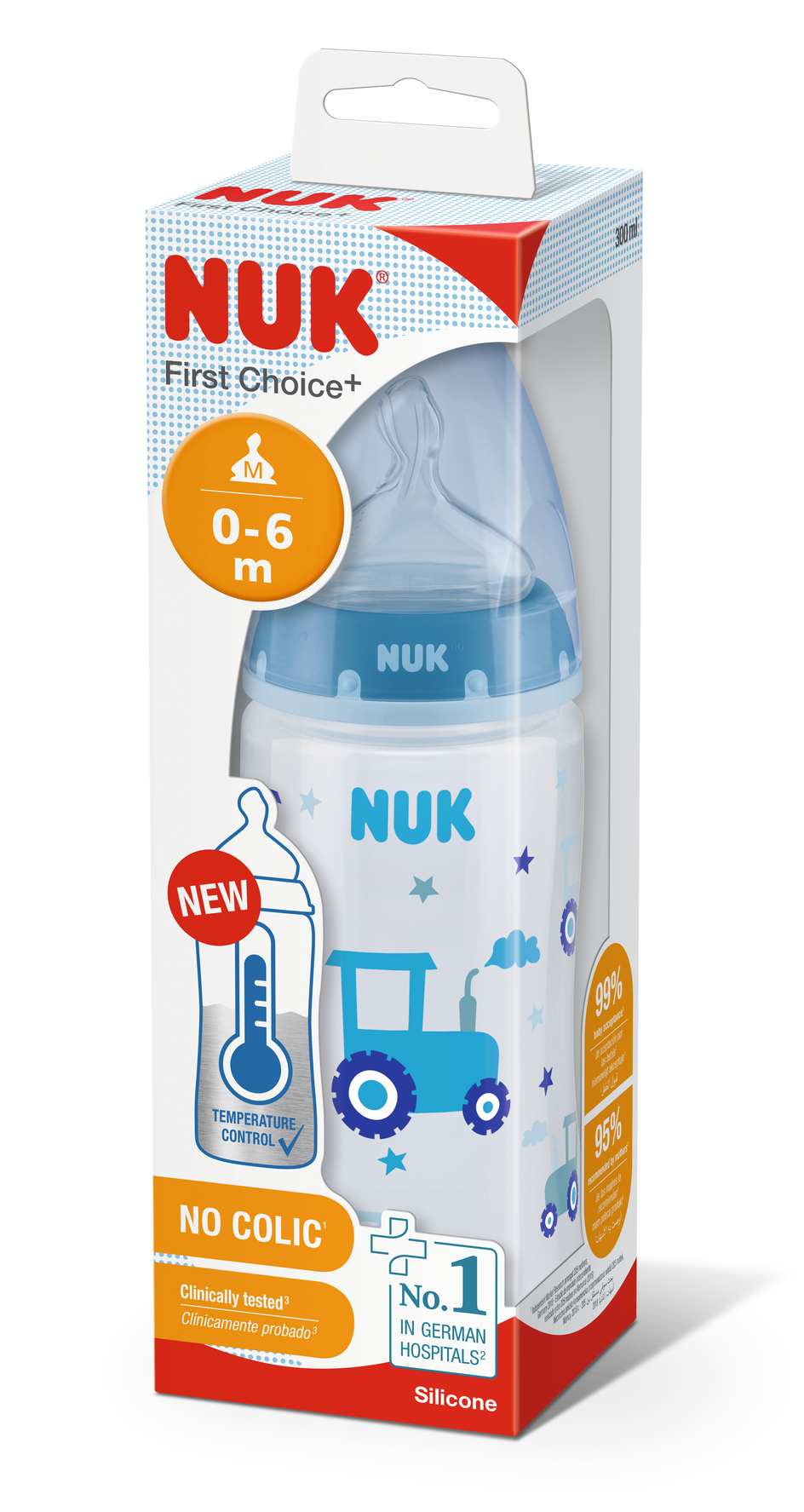 NUK First Choice Kojenecká láhev 300 ml se silikonovým dudlíkem a indikátorem teploty